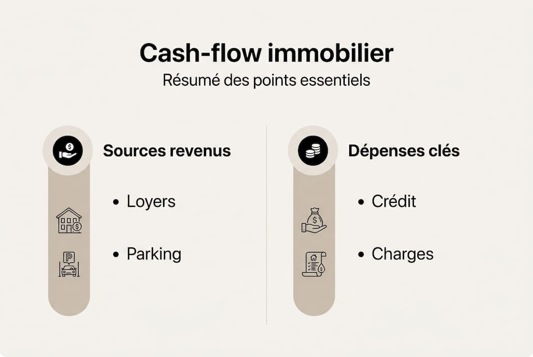 Le cash-flow immobilier représente la différence entre vos revenus locatifs et l'ensemble de vos dépenses liées au bien. C'est l'argent qui reste réellement dans votre poche chaque mois après avoir payé toutes les charges.