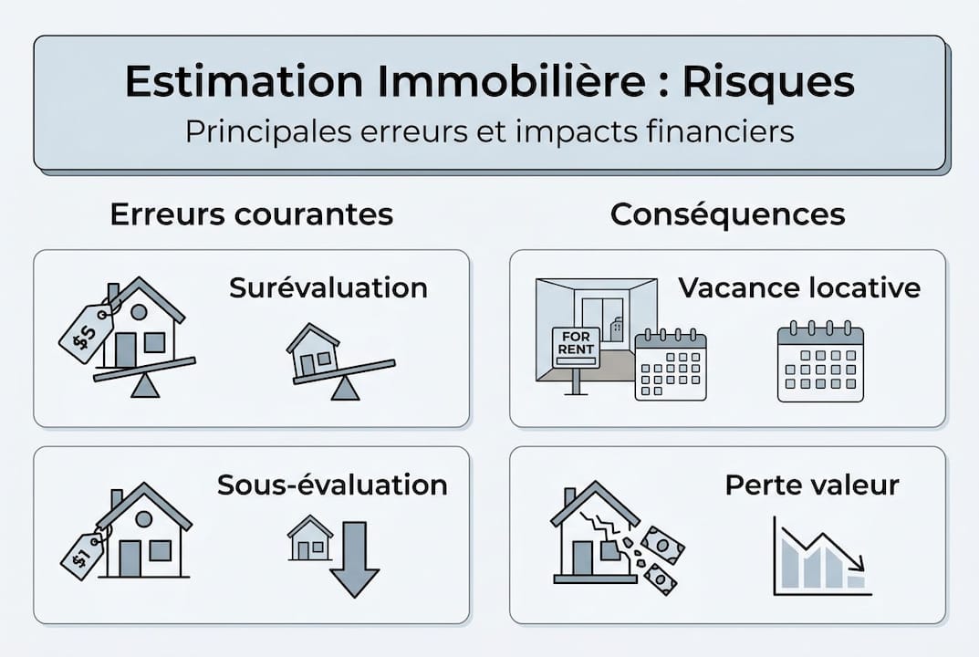Une surestimation ou sous-estimation expose l'investisseur à une vacance locative prolongée ou à une perte financière directe sur la valeur du patrimoine.
