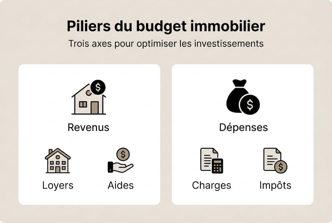 Avant de construire quoi que ce soit, il faut connaître les trois piliers : les revenus locatifs attendus, les charges récurrentes (taxe foncière, charges de copropriété, assurances, gestion locative) et les dépenses exceptionnelles (travaux, vacance locative, sinistres). Un guide analyse du marché immobilier vous aide à calibrer vos hypothèses de loyer selon les réalités locales.